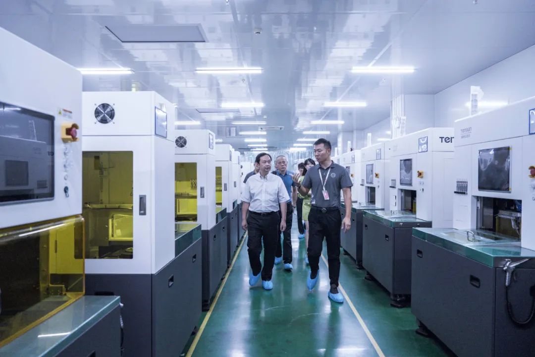 隨后,盛總裁盧國明、副總裁盧國藝陪同信科董事長羅欣一行來到生產車間,了解公司在3C、半導體、新型顯示方面的最新技術和產品。董事長羅欣表示:“看到學生們在這樣時刻引領科技創新的崗位上實習、磨煉,我們很放心。”